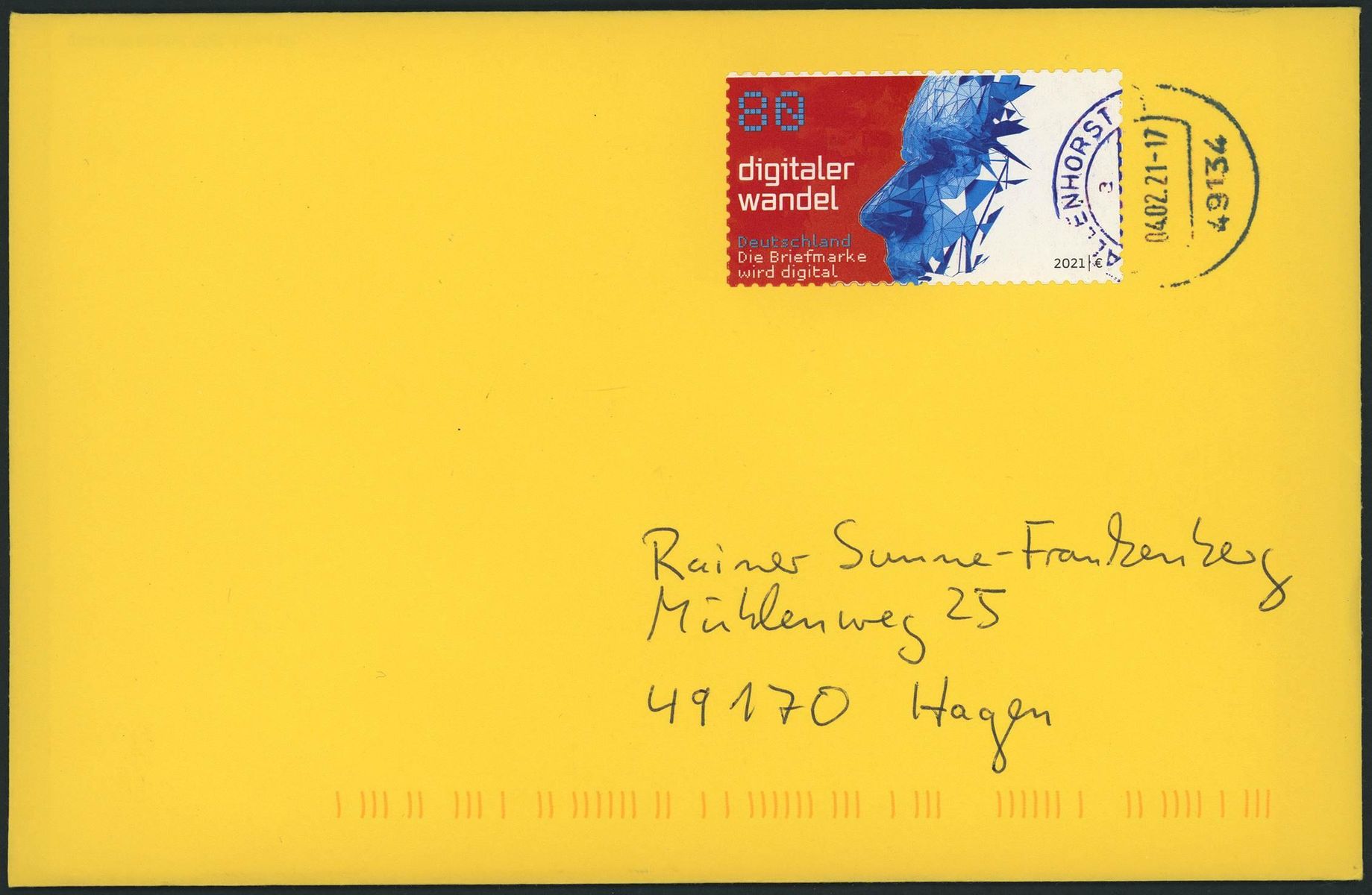Kleiner Jackpot: Briefmarke "Digitaler Wandel" ohne Matrix Code, heute auf einem Berliner Flohmarkt in einem Karton mit neueren BRD-Briefmarken gefunden. Mitbekommen habe ich es allerdings erst zu Hause. Es handelt sich wohl um die nassklebende Variante.