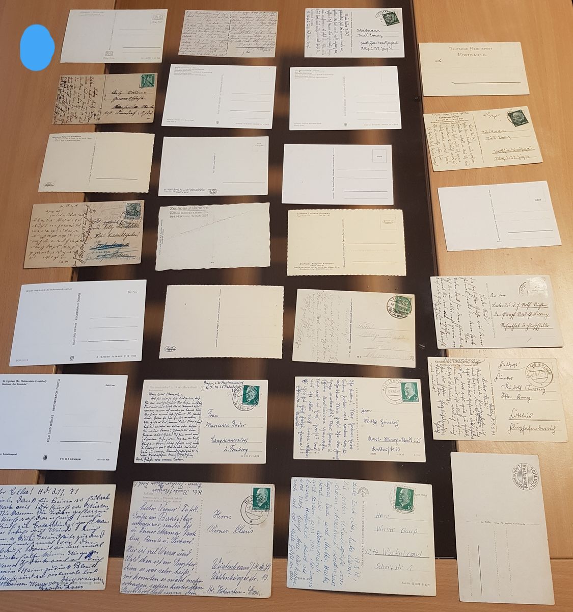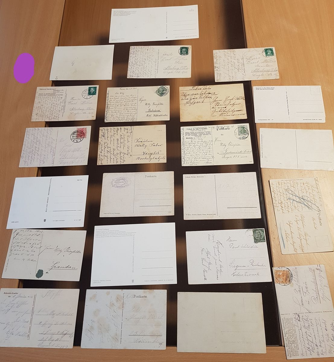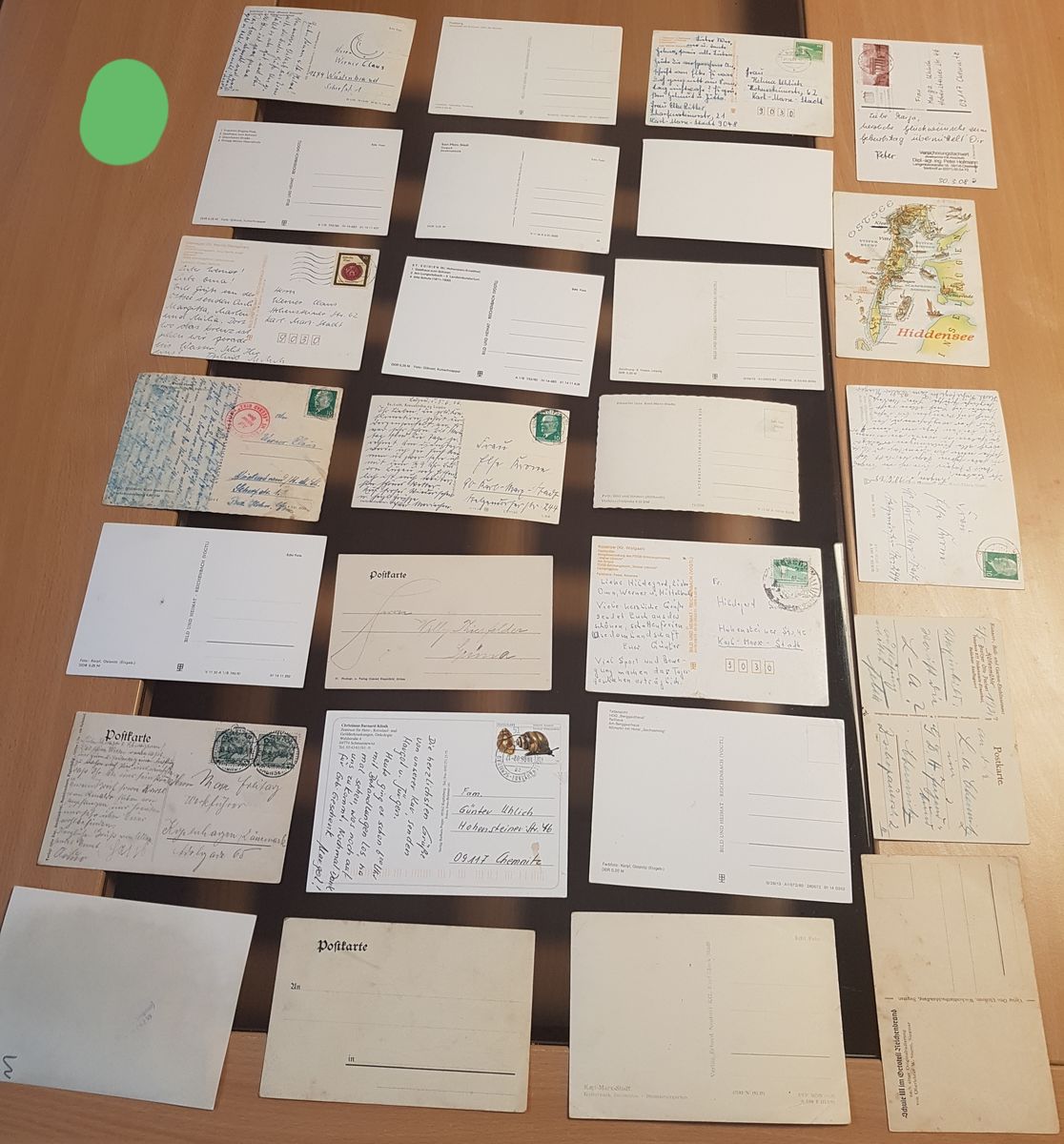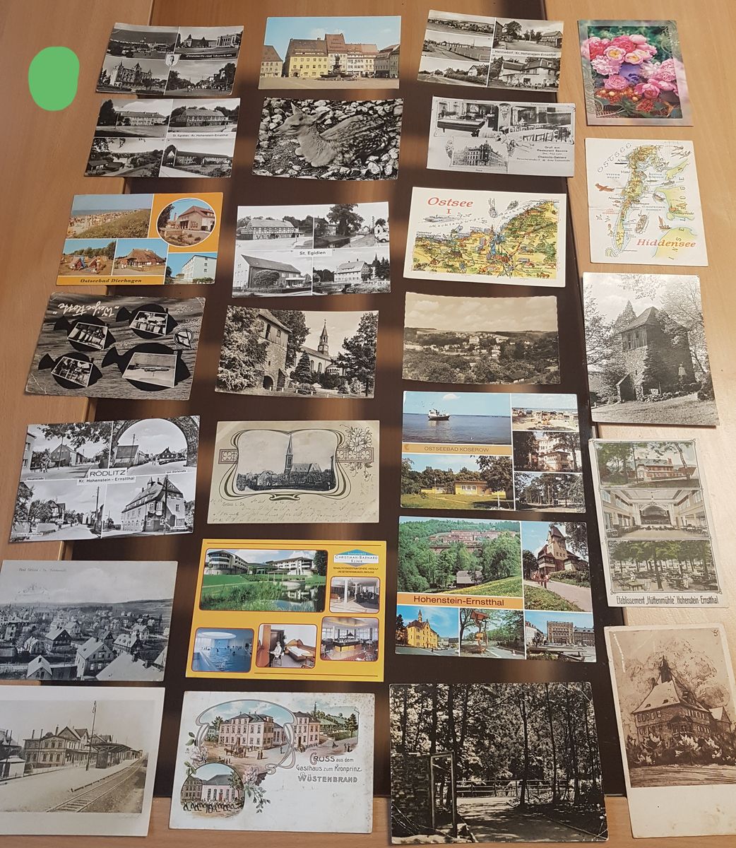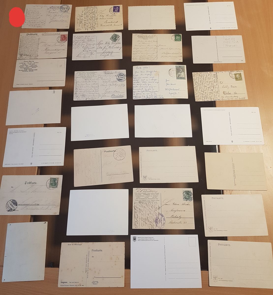für meine Schwiegermutter soll ich eine Ladung Motivpostkarten verkaufen. Einige sind von ca, 1910 - 1920, alle aus der Gegend um Chemnitz. Sie zeigen hauptsächlich Gebäude, Dörfer, Plätze u.Ä. Ein paar sind auch gelaufen, mit harmlosen Germania-Marken und anderer Standardware aus der Zeit.