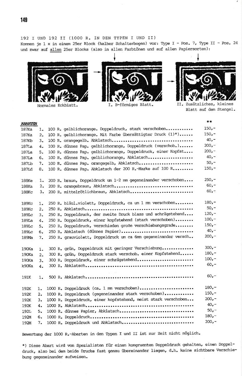 1000 Rubel = Nr. 161 wc = dickes Papier. Es ist die einzige Marke auf dickem Papier. 100 Rubel = Nr. 156 y = dünnes Papier. Diese Marke wurde sowohl auf dünnem als auch auf normalem Papier gedruckt.