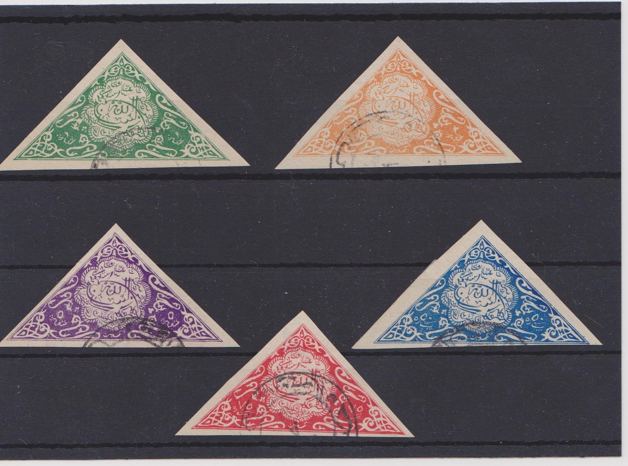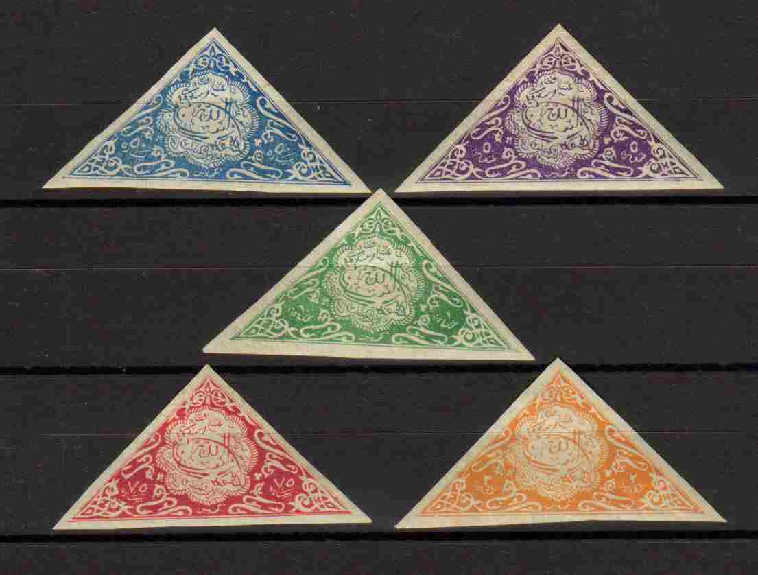 Die dreieckige Form lässt vielleicht auf Dienst- oder Portomarken schließen.