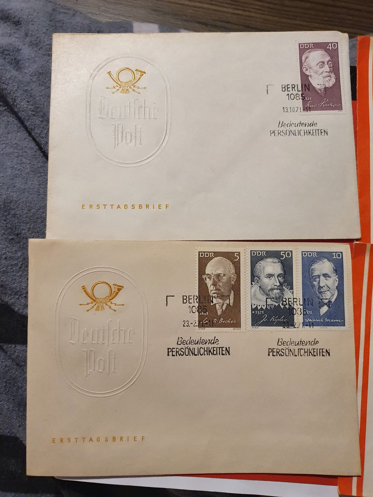 @Yumeffi Bild 366693-20210519-153009-jpg zeigt zwei Erstagsbriefe der DDR. Der obere ist Mi-Nr. 1707 Katalogwert 1,5 € und der untere enthält die Ausgaben 1644, 1649 und 1945. Es müsste sich noch ein Umschlag finden. Beide zusammen 4 €.