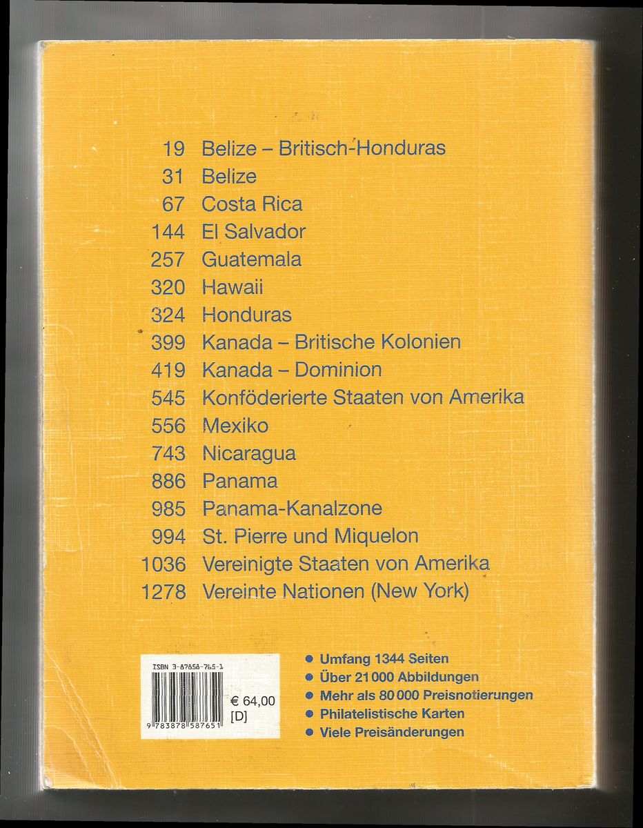 12. Juni 2021 um 10:03 #1 Hallo Forumsfreunde,gegen 5,00 € Portoerstattung ein Michel Nord- und Mittelamerika 2004 abzugeben.Ist noch in schwarz weißBei Interesse bitte PN an michGruß vonWolle