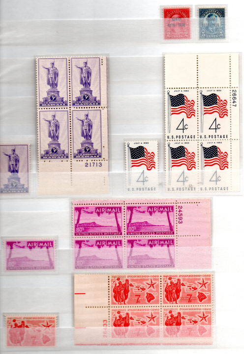 Im Jahre 1959 wurde Hawaii ein Bundesstaat der USA. Vorher wurde Hawaii als Territorium verwaltet und war deshalb auch nicht mit einem Stern auf der Flagge vertreten. Die Zeit als Territorium war von der Motivseite, sprich Briefmarken nicht sonderlich ergiebig. Gerade mal fünf Briefmarken mit Bezug Hawaii wurden von der US-Post ausgegeben. Das macht es relativ einfach diese Ausgaben in die Sammlung aufzunehmen. Lediglich die erste Ausgabe (150. Jahrestag der Landung von James Cook auf Hawaii) ist da kostenintensiver wenn man zusätzlich auf Viererblocks, möglichst vom Eckrand, schaut. Hier zeige ich mal eine Seite mit den Ausgaben.