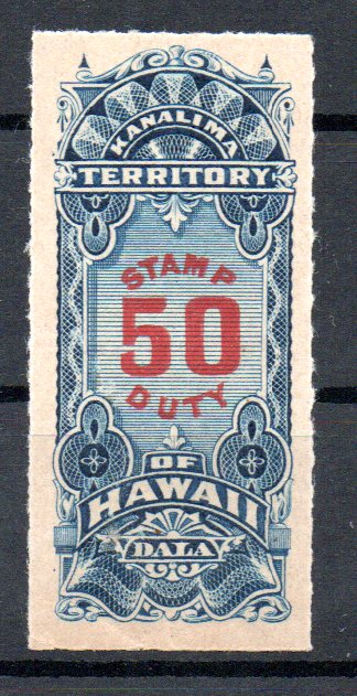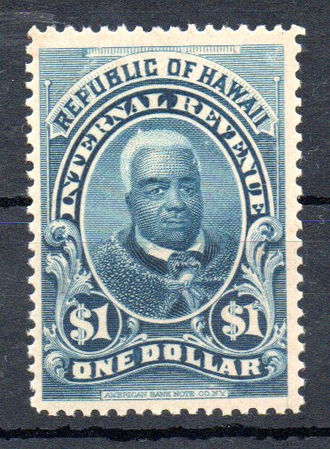 durch Zufall bin ich auch über Revenue-Marken von Hawaii gestolpert. Ist denke ich auch eine nette Ergänzung einer Hawaii Sammlung. Mit 17 Marken ist das Gebiet auch relativ übersichtlich wobei man auch noch die einzelnen Phasen in der Geschichte von Hawaii betrachten kann. Acht Marken sind dabei dem Königreich zuzurechnen. Zwei Marken wurden in der Zeit der provisorischen Regierung (Republik Hawaii) aufgelegt. Zwei weitere Marken fielen in die Zeit der Republik Hawaii. Die restlichen 7 Marken wurden für das Territorium Hawaii bis 1913 gedruckt. Man kann also mit den Marken sehr schön die Geschichte vom Königreich bis zum Territorium nachvollziehen. Siebzehn Marken hören sich zwar wenig an aber alle komplett zu dokumentieren ist eine andere Geschichte. Preise und die Seltenheit der Marken in der gewünschten Qualität sind hier sicher ein nicht zu unterschätzendes Problem. Aber mittlerweile zwei Marken kann ich schon mal zeigen. Eine Marke (1$) stammt aus der Zeit der Republik Hawaii und die andere (50$) aus der Zeit des Territorium Hawaii. Die Marke zu 50$ ist dabei fast identisch mit einer Ausgabe aus Zeit des Königreiches. Lediglich die Inschrift HAWAIIAN ISLANDS wurde durch TERRITORY OF HAWAII ausgetauscht.