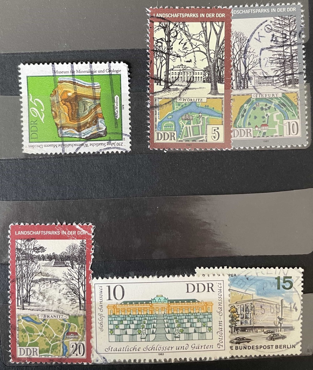 Soweit ich das überblicken kann sind es Hauptsächlich DDR-Briefmarken der 60er, 70er und 80er Jahre.