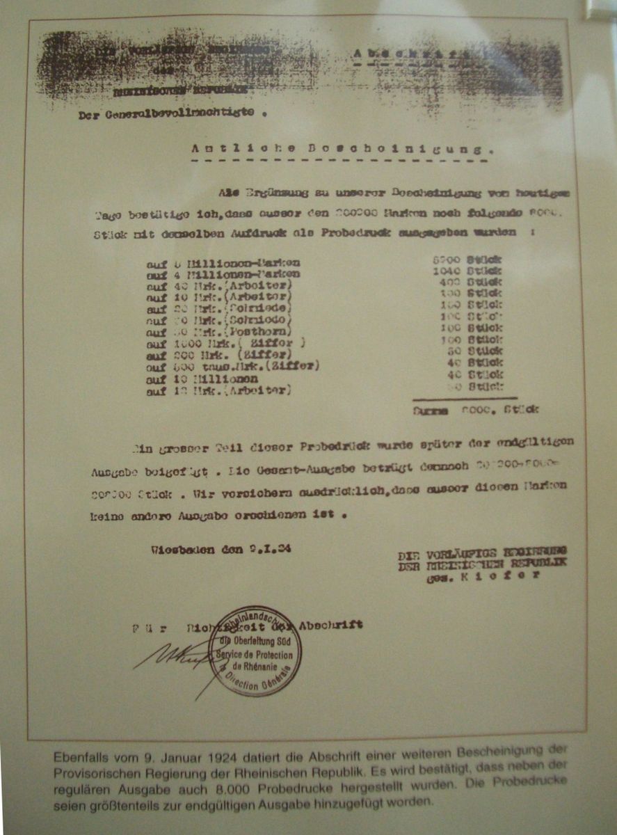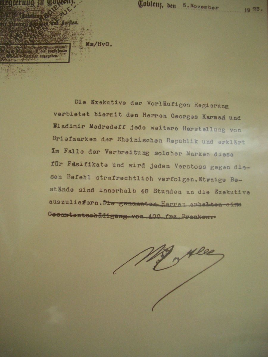 Der Aufdruck R. R. auf Marken aus der Inflationszeit ab 1923 bedeutet Rheinische Republik, das war damals ein kurzzeitiger Versuch einer Staatsgründung separatistischer Bewegungen im Rheinland. Der gezeigte Brief wurde mal bei Gärtner versteigert, die Aufdruckmarke war wohl nicht frankaturgültig und ist so durchgerutscht, einen Preis dafür konnte ich nicht mehr feststellen.