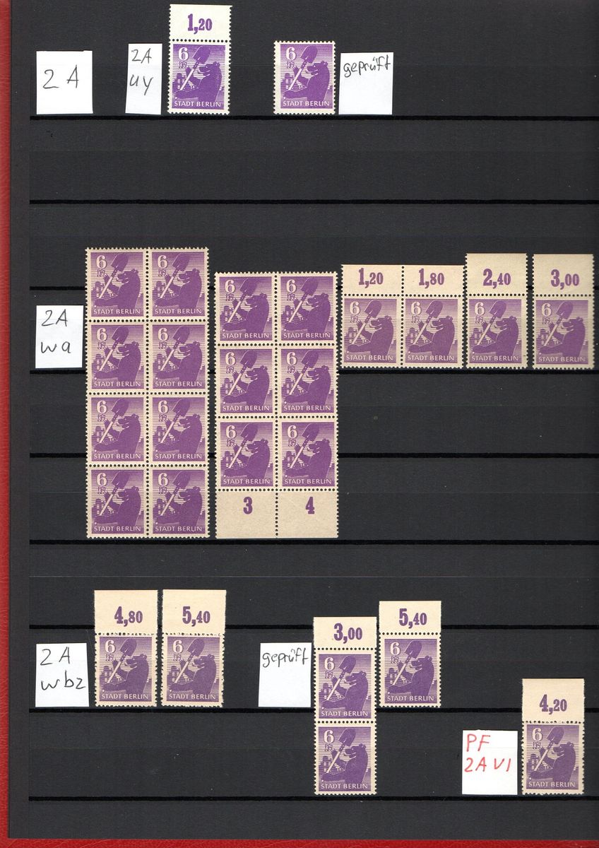 Nachtrag zum Papier. Du hast zwei geprüfte 2 A wbz. Wenn Du die mal genauer anschaust ist das Papier mit einer feinen Struktur versehen, hat wenige oder keine größeren Partikel und sieht heller aus. Im UV-Licht wird diese Marke immer heller sein, als eine waz. Die waz ist dunkler, hat eine grobe Struktur und viele Holzeinschlüsse. Bei der 2 A ist die einzelne F2 (1,20) auch u. Alle anderen sicherlich w.