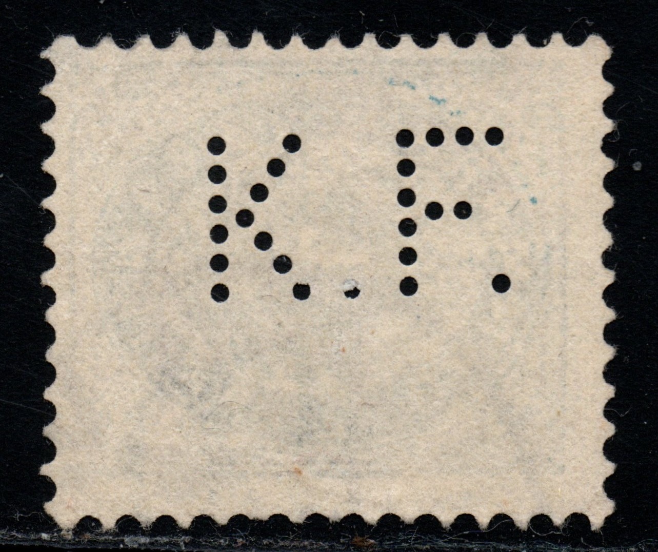Die Perfin “KH” ohne Punkte, die du hier in einer dänischen Stempelmarke zeigst, stammt von K 26 A/S Kjøbenhavns Handelsbank. Es handelt sich um einen 5-teiligen Perforator, der speziell für die Perforation von Stempelmarken mit den Initialen “K H” hergestellt wurde.