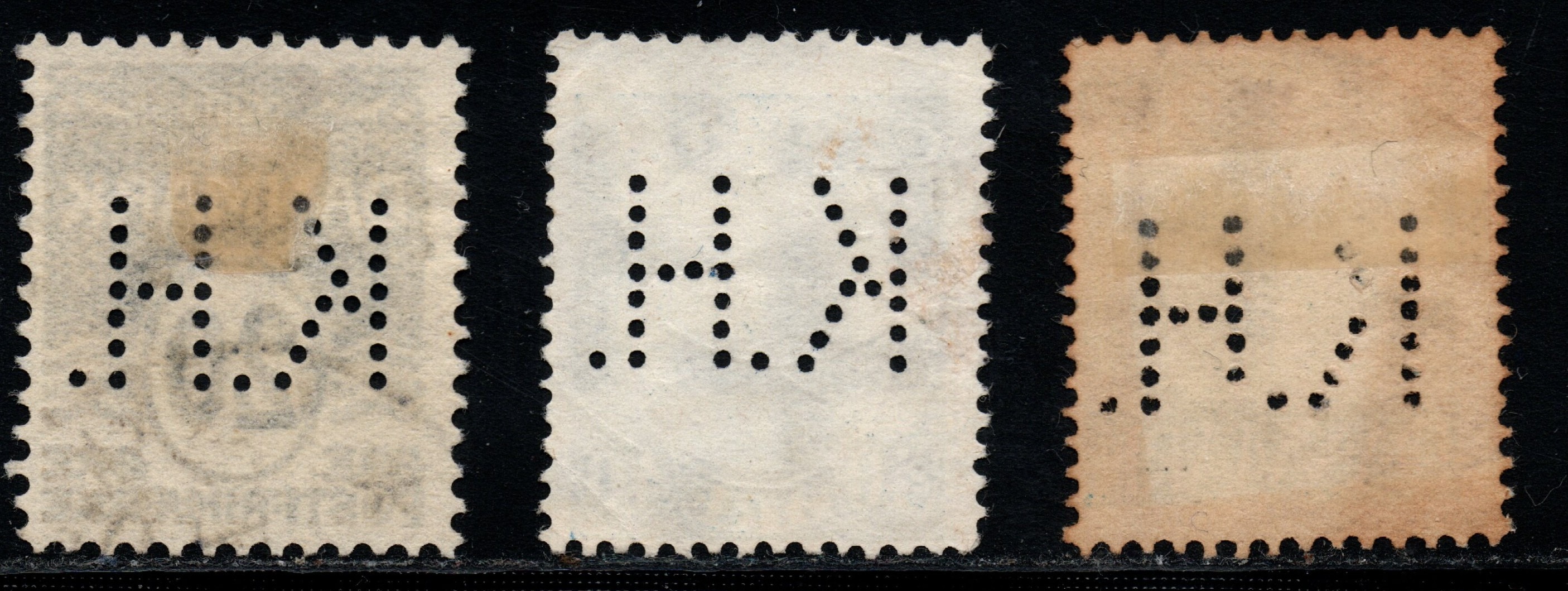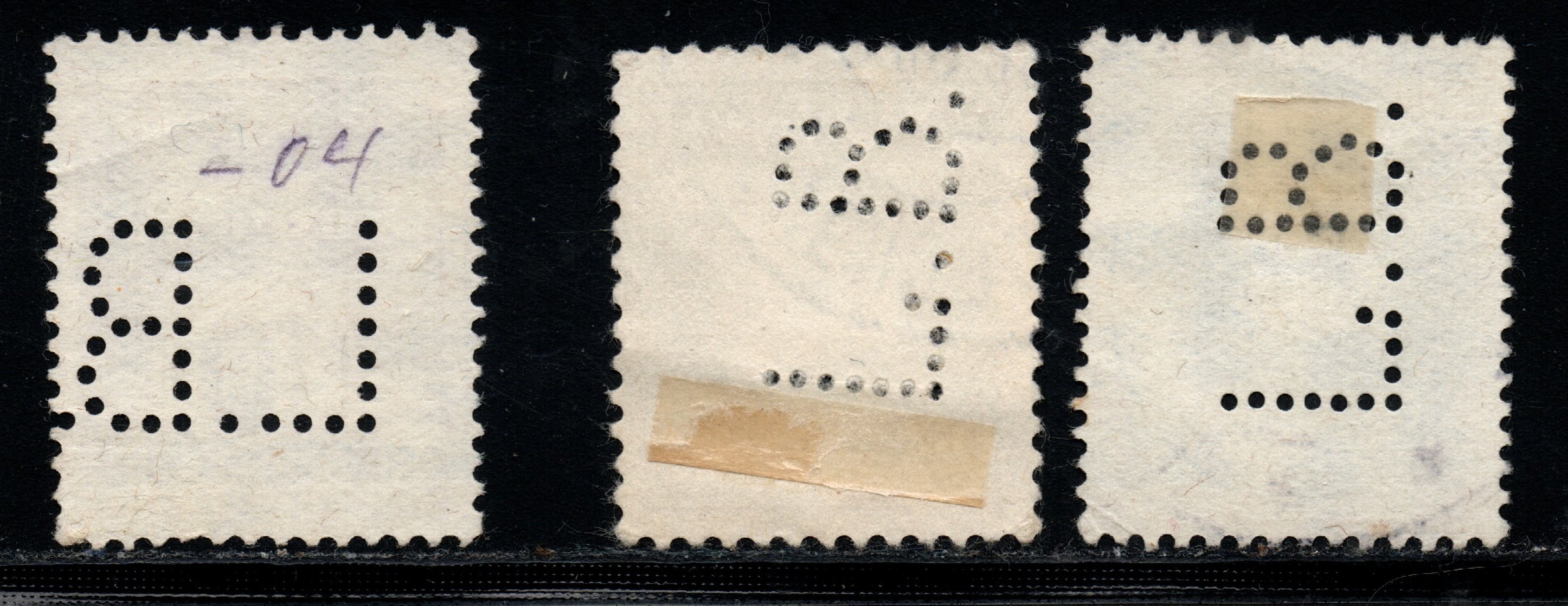 Ich zeige eine Marke mit Perfin L.B. ( L ohne Serife) und zwei Marken mit Perfin L.B. (L mit Serife)