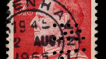 Diesmal sind es vier Marken mir der Lochung "P L." = Paul Lehmann - Internationale Transporter. Laut perfiner.dk kommen zwei verschiedene Perfins der Firma vor, mit etwas größeren Löchern aus Kopenhagen (p24) und mit etwas kleineren Löchern aus Aarhus (p24.1). Die zweite Marke von links weist die Lochung mit kleineren Löchern auf und es der Perfin-Teufel will, die Marke wurde in Aarhus abgestempelt.