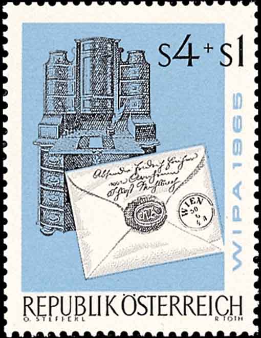 In Österreich erschien zur WIPA 1965 diese Briefmarke mit Text in Kurrentschrift.