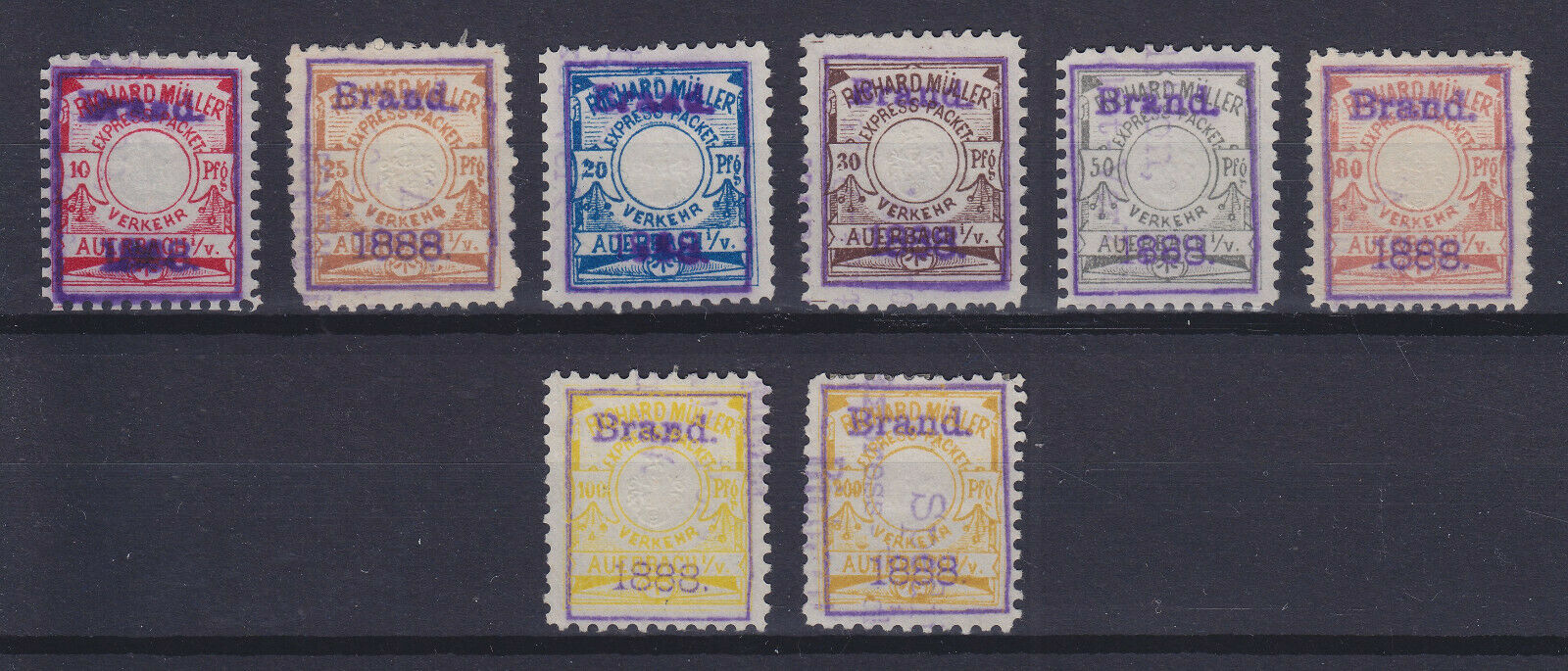 Zum Schluß hier die Marke für (e) Drucksachen mit dem Aufdruck Brand 1888, welche im Katalog mit dem Ausgabedatum 1889 gelistet ist.