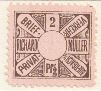 Diese angebliche Privatpost-Marke von Auerbach & Falkenstein wird bei Ebay als: Michel unbekannt bezeichnet. Der Verkäufer verlangt fast 50,- EUR für die Marke. Im Privatpostmarken-Spezial-Katalog von Michel findet man diese Marke zwar nicht, aber jede Menge anderer Marken (bis Michel-Nr. 164).