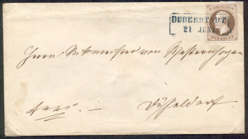 Brief von Duderstadt nach Hannover vom 27.5.1852 mit zeizeiligem Rahnenstempel.
