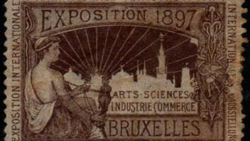 Es handelt sich um eine leider etwas mitgenommene, stockfleckige Marke zur Exposition 1897 Arts, Siences, Industrie, Commerce Bruxelles. Ich denke, damit ist die 1897 in Brüssel veranstaltete Weltaustellung gemeint.