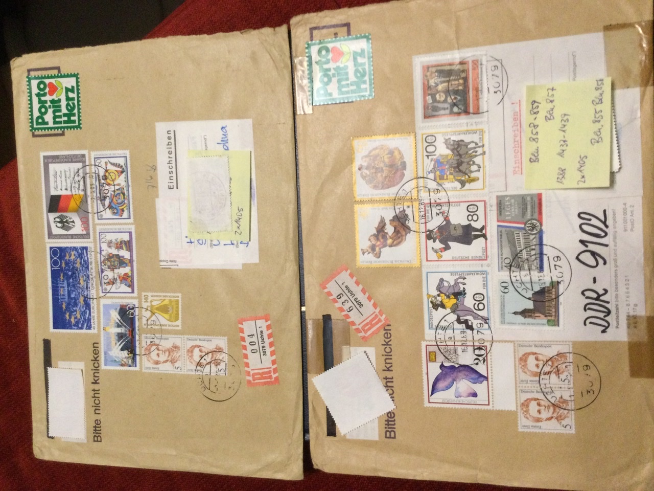 Weiterhin schreibst Du, es handele sich um „Wertbriefe“. Woher nimmst Du diese Vermutung? Bei Wertbriefen müssten V-Zettel (statt R-Zettel) sowie rückwärtige Stempel vorhanden sein. Ist hier nicht der Fall. Somit „normale“ R-Briefe (Einschreiben), keine Wertbirefe - soweit ich das auf den Fotos sehen kann.