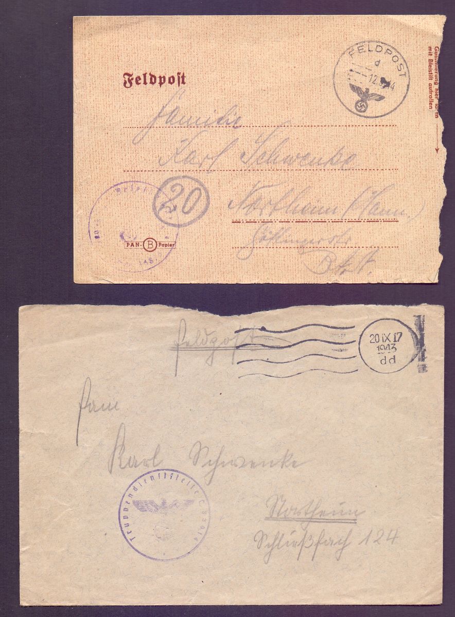 Und dann kann man noch bei "Divisionsschicksale" herausgegeben vom Suchdienst des DRK nachforschen wo diese Truppe wann war(en) oder benutzt (sofern man eine philatelistische Bibbliothek in der Nähe hat) von Georg Tessin "Die Verbände und Truppen der deutschen Wehrmacht 1939-1945"