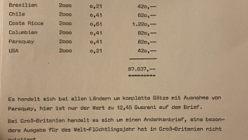 Ich suche nach einer Wertschätzung für eine Serie von UNO Marken. Es geht um die Serie UNO Refugee Jahr 1959-1960 - mein Urgroßvater hat damals die gesamte Serie gekauft, soweit ich weiß. Es sind also Marken und Ersttagsbriefe aus jedem Land verfügbar. Von den meisten Ländern sollten es über 5.000 Marken sein (inkl. Vatikan etc.).