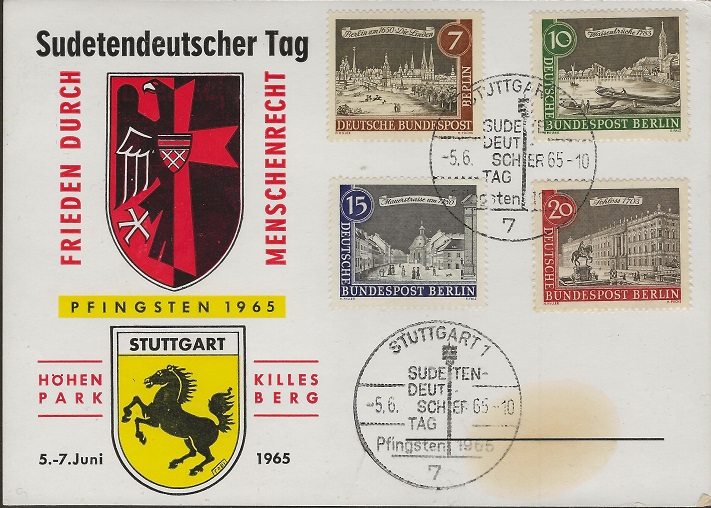 3. Es ist ein kompletter Satz Wohlfahrtsmarken frankiert (normale Post wird üblicherweise nicht mit kompletten Sätzen frankiert), dazu auch noch die Ausgabe "Berlin". Ein Bezug zu Berlin besteht aber ansonsten bei dem Beleg nicht.