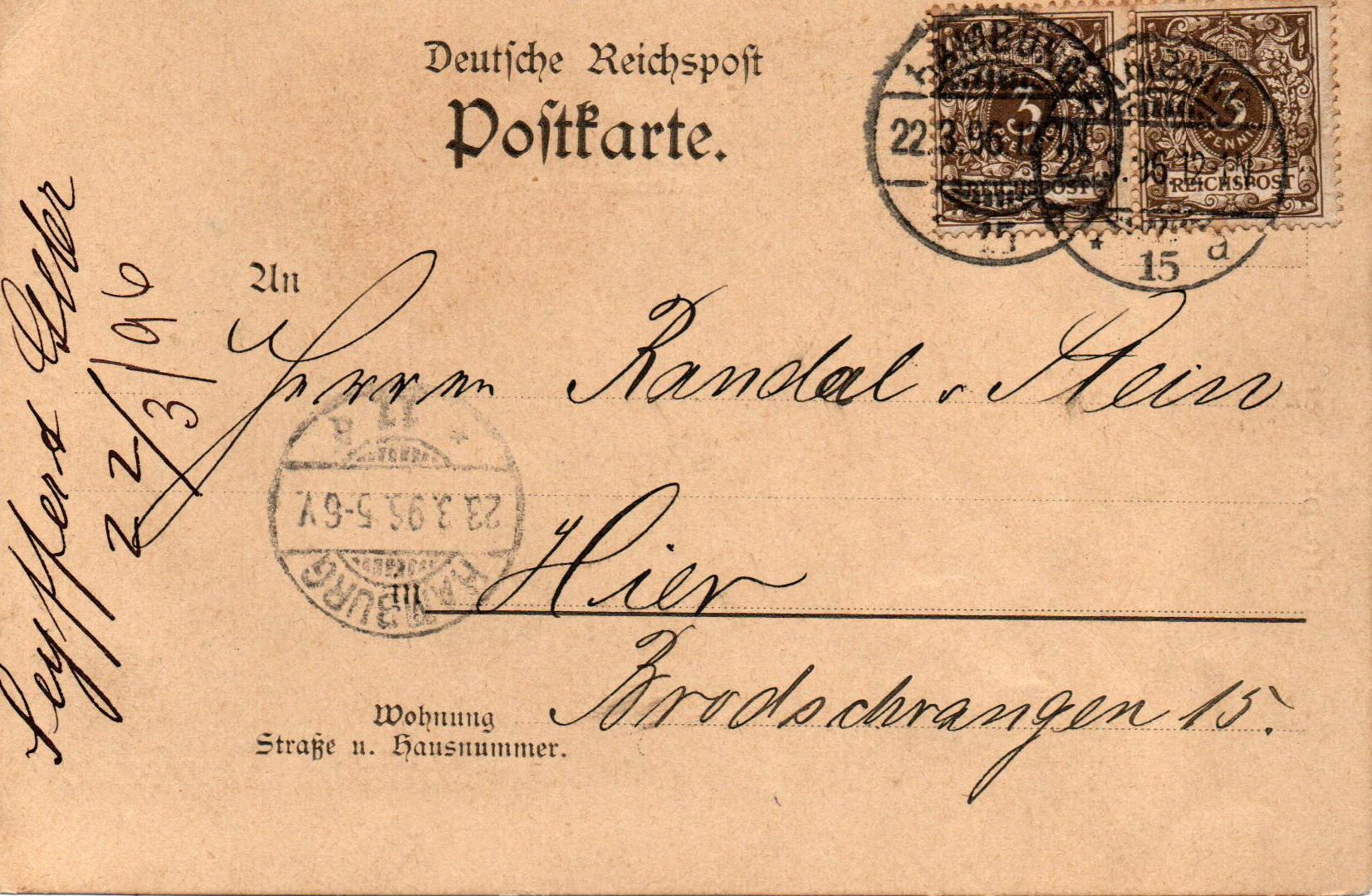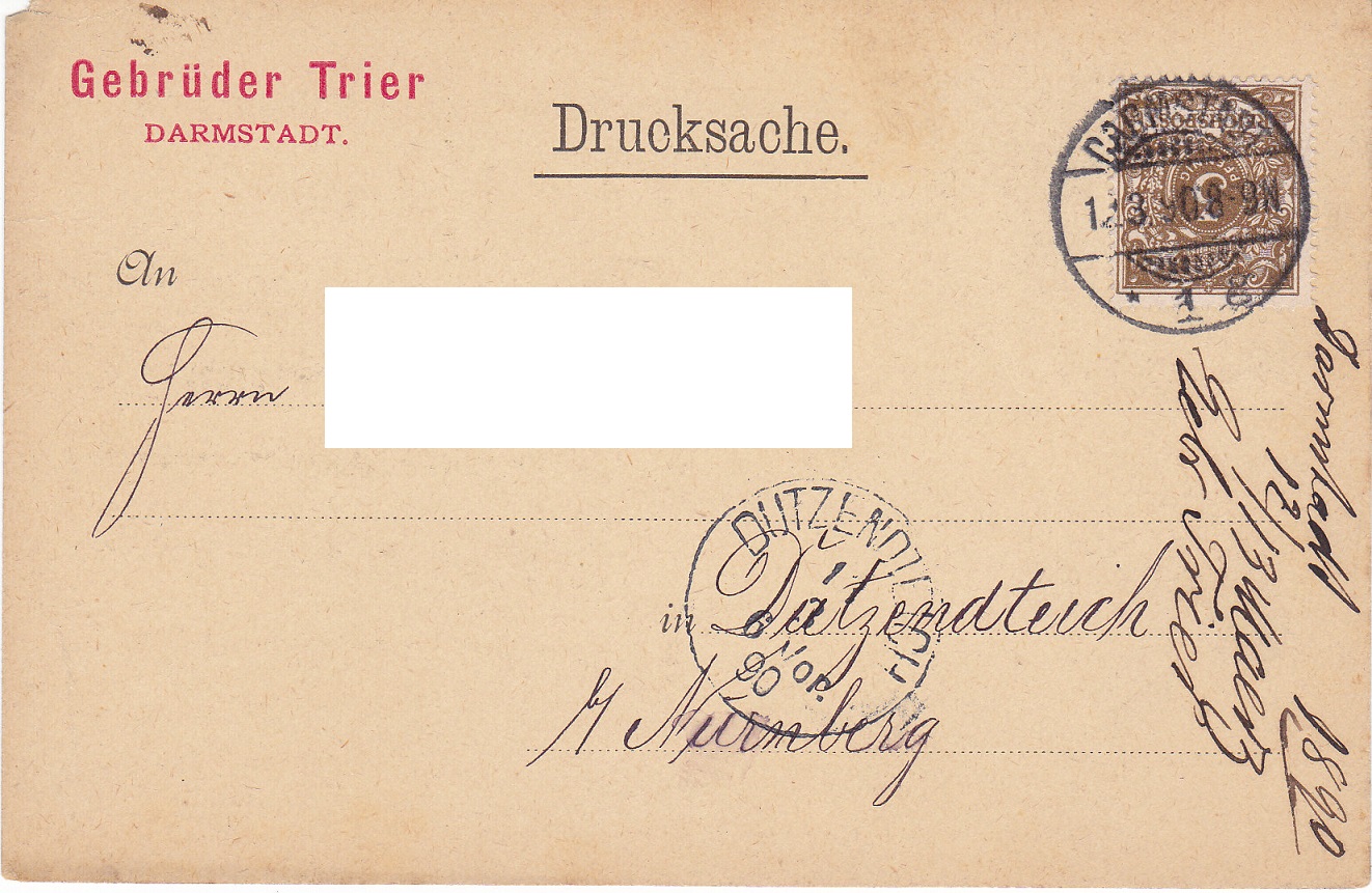 Als Einzelfrankatur für Drucksachen, 1. Gewichtsstufe, und für Ortspostkarten verwendet.