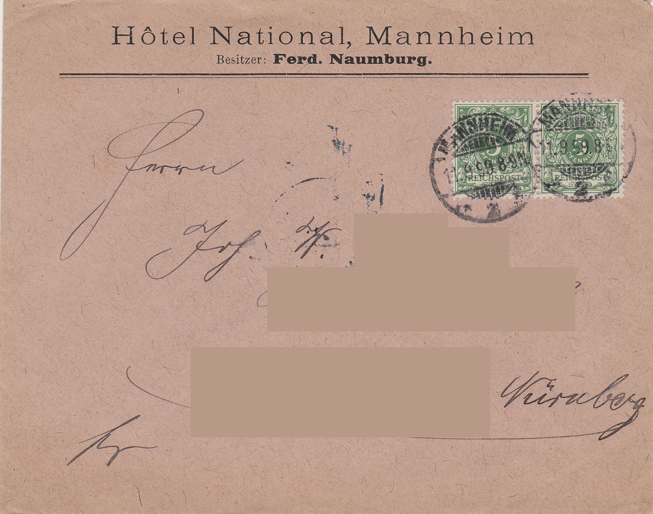 Beleg vom 11.09.1899 von Mannheim nach Nürnberg