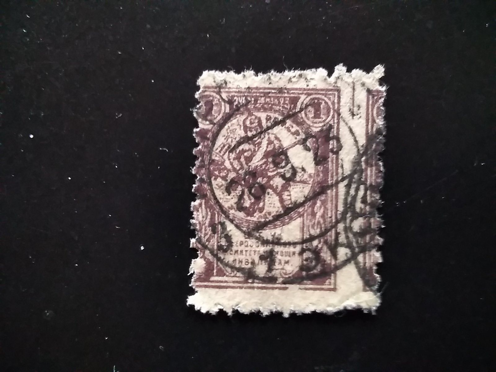 Dank puolankas Übersetzung fand ich die folgende, noch schönere Vignette vom russischen Invalidenausschuss, wohl eine Art Wohltätigkeits-Marke für Invaliden des 1. Weltkrieges. Auch das vermutete Erscheinungsjahr oben rechts 1923 müßte richtig sein. Gefunden in: