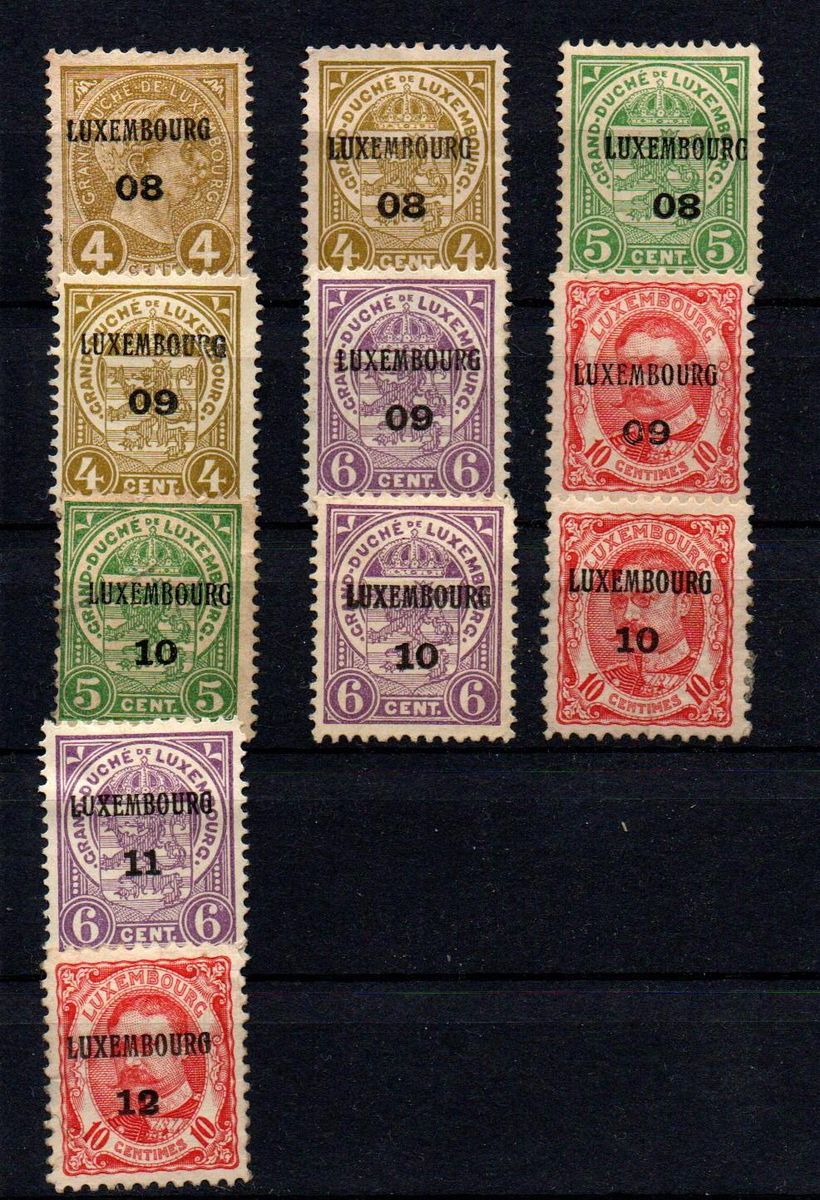 Laut meinem Michel-Europa gab es in Luxemburg Handstempel-Vorausentwertungen ab 1900. Vorausentwertungen mittels Buchdruck-Aufdruck gab es von 1908 bis 1917 und von 1919 bis 1925. die luxemburgischen Vorausentwertungen sind den belgischen Vorausentwertungen aus dieser Zeit nachempfunden.
