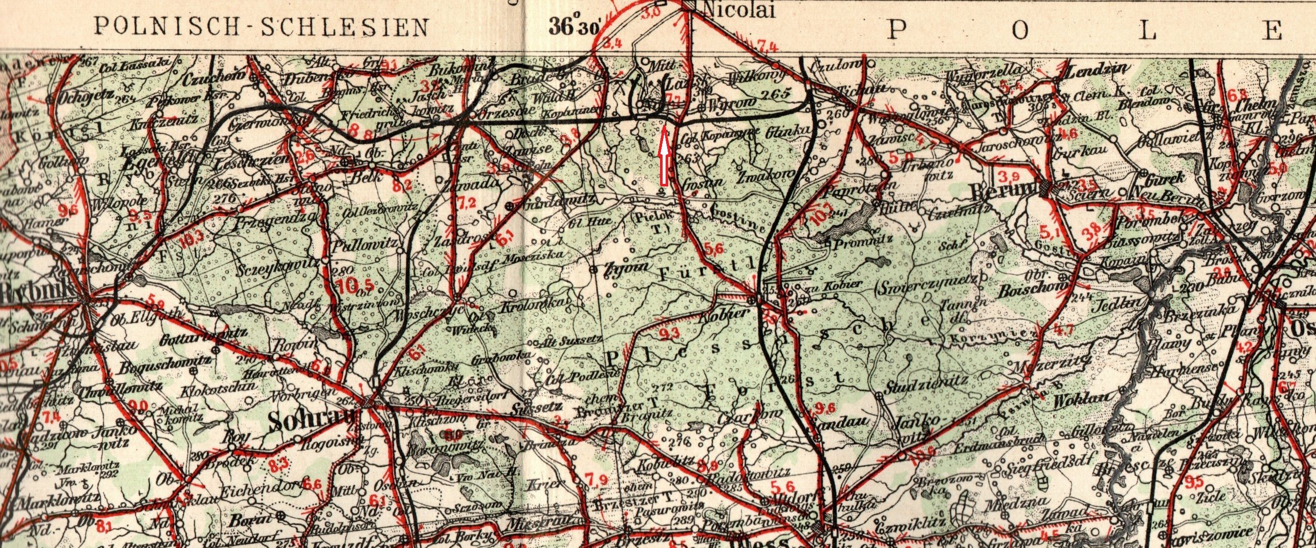 Lazisk liegt in Ost-Oberschlesien und stimmte bei der Volksabstimmung für einen Anschluss an Polen. Leider liegt das Städtchen so ziemlich am Kartenrand. Trotzdem ein Ausschnitt aus meinem Uralt Dunlop Straßenatlas. Der Ort liegt etwas südlich von Nicolai und heißt heute Laziska Gorna (Das poln L mit Strich, in etwa wie ein W ausgesprochen). Nieder-Lazisk hat einen Bahnhof, die Bergwerke Werkbahnanschlüsse.