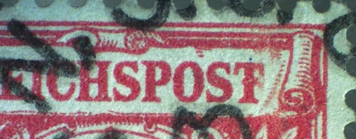 Das innen ausgebrochene "O" von Reichspost ist der Plattenfehler VII.