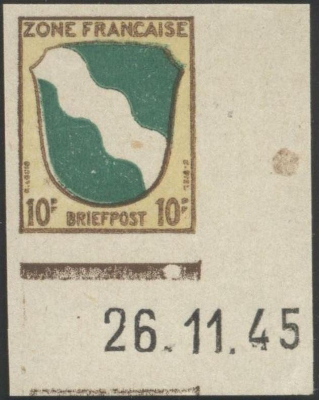 ungezähnte Druckdatum vom 3.12.45 in den Varianten kurzer und langer Anstrich der 1.
