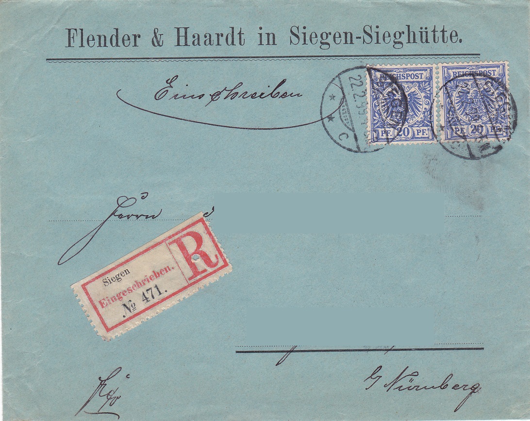Beleg vom 22.02.1899 von Siegen nach Nürnberg