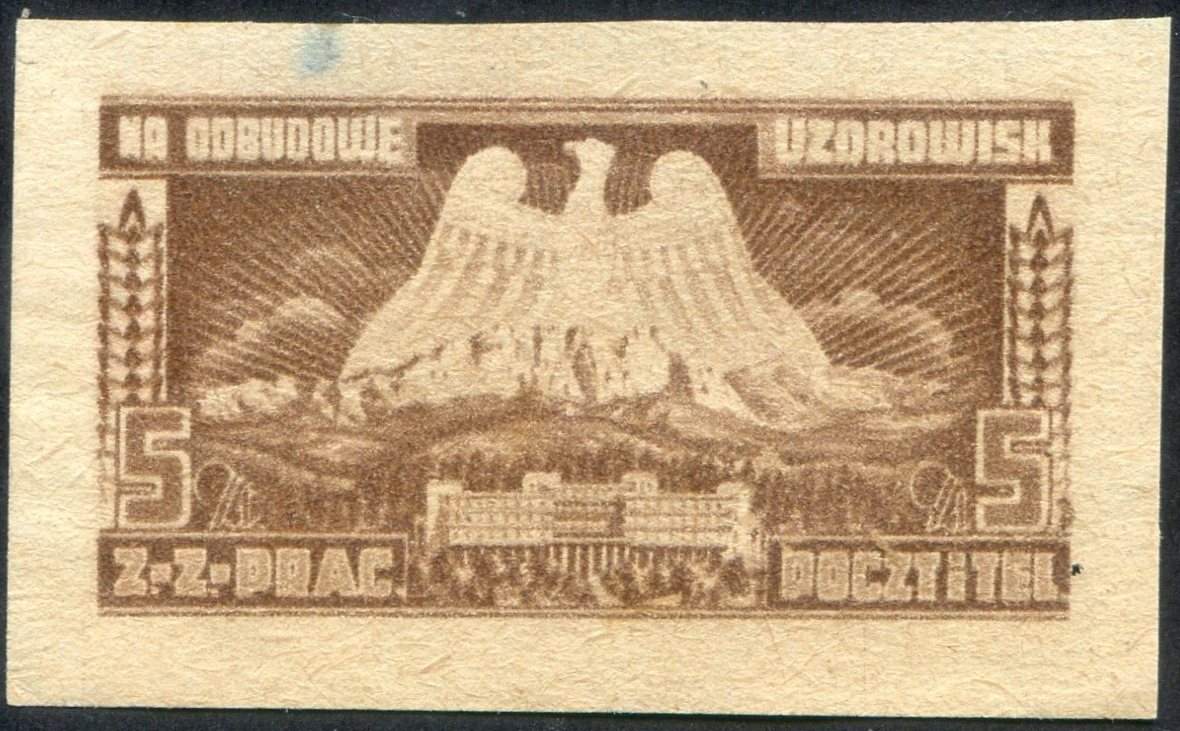 Das ist eine Spendenmarke für die Wiederherstellung eines Kurhotels der Post.