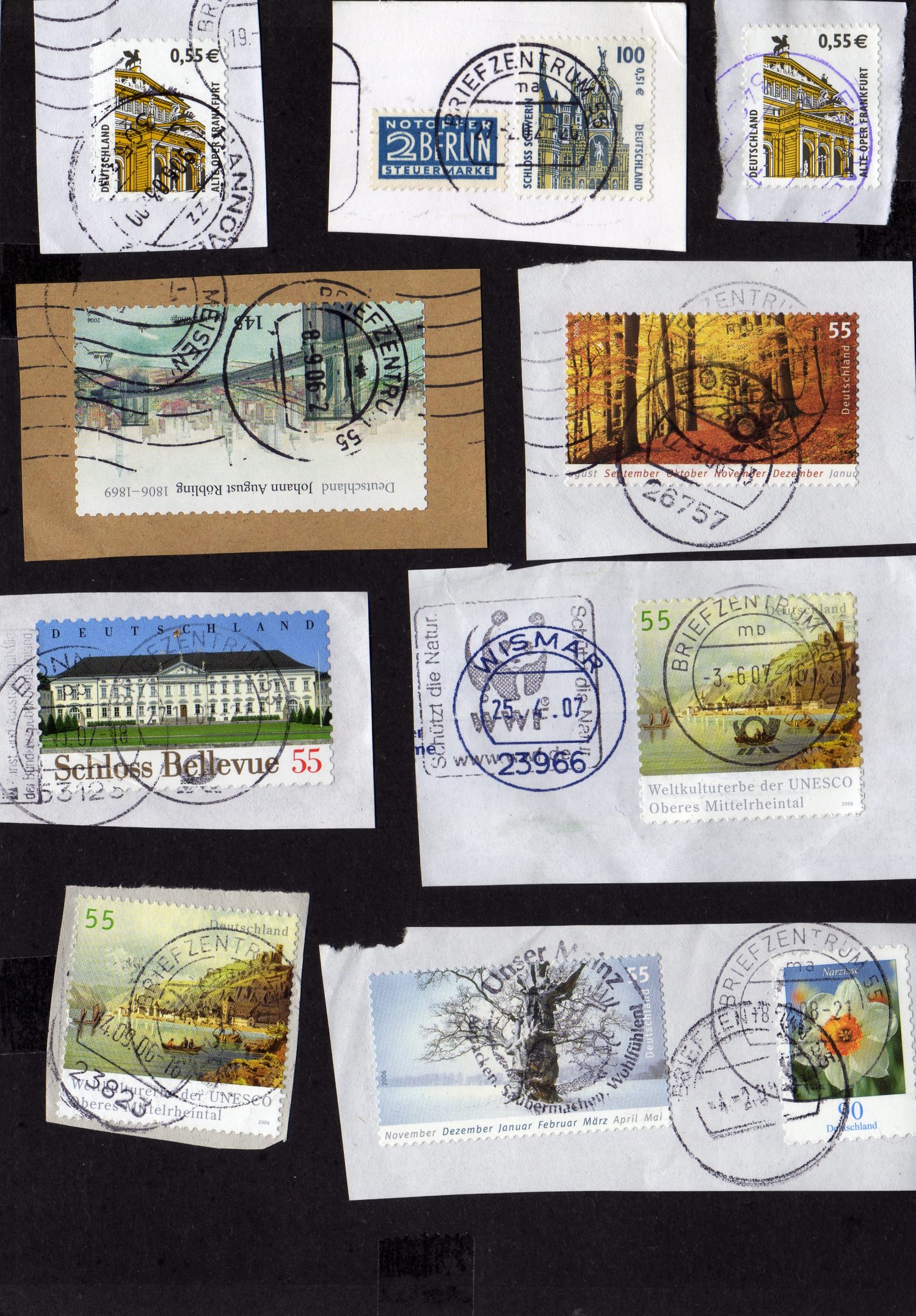 Oben rechts die 55er ist mit violettem Stempel ,Fulda in 2003 entwertet.