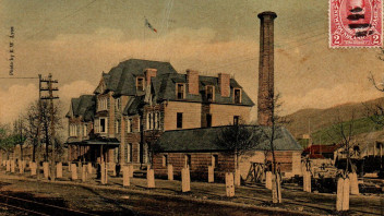 nochmals St. John's, die Hauptstadt Neufundlands. Diesmal der Bahnhof auf einer bildseitig frankierten Postkarte nach Belgien aus dem Jahr 1911.