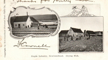 Gleich die erste Karte aus dem Jahr 1906 lässt sich keinem Ort zuordnen. Verlegt wurde die Karte von der Newfoundland Pictorial Post Card Co. 1904 mit dem Titel "Staple Industry, Newfoundland. Drying Fish.