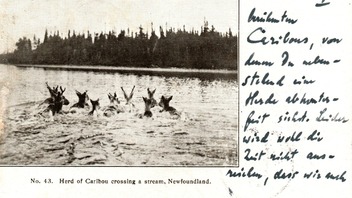 • NFLD, PPC Herd of Caribou crossing a stream, 1903.jpg