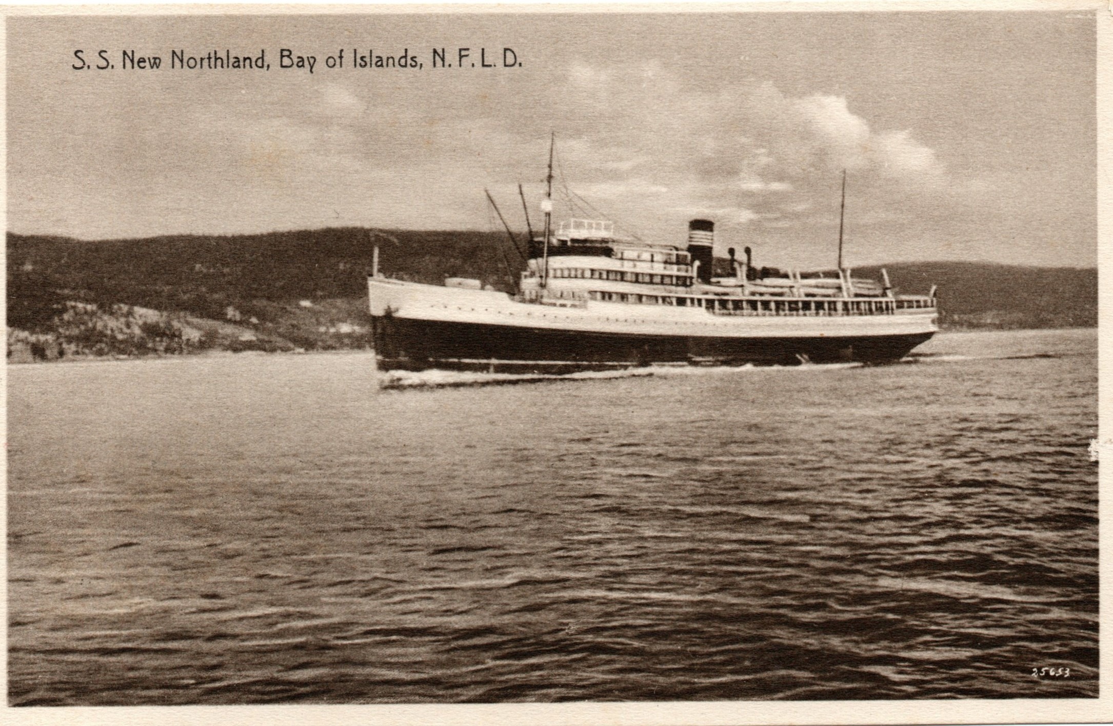 nach längerer Pause kann ich mal wieder eine Ansichtskarte aus Neufundland zeigen. Es handelt sich um das Dampfschiff (S.S. = Steam Ship) New Northland in der Bay of Islands, Newfundland.
