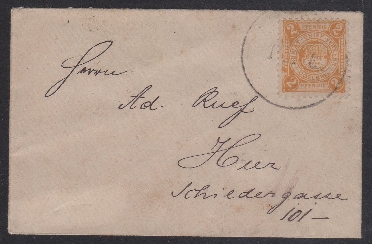 Diese Karte ist vermutlich durch den unbedarften Absender in den falschen Briefkasten eingeworfen und später durch die Privatpost abgestempelt worden. Obwohl es sich um einen Mitbewerber handelte wurde der Brief direkt an die Reichspost weitergeleitet und vor dort zugestellt. Ist zumindest meine Interpretation.