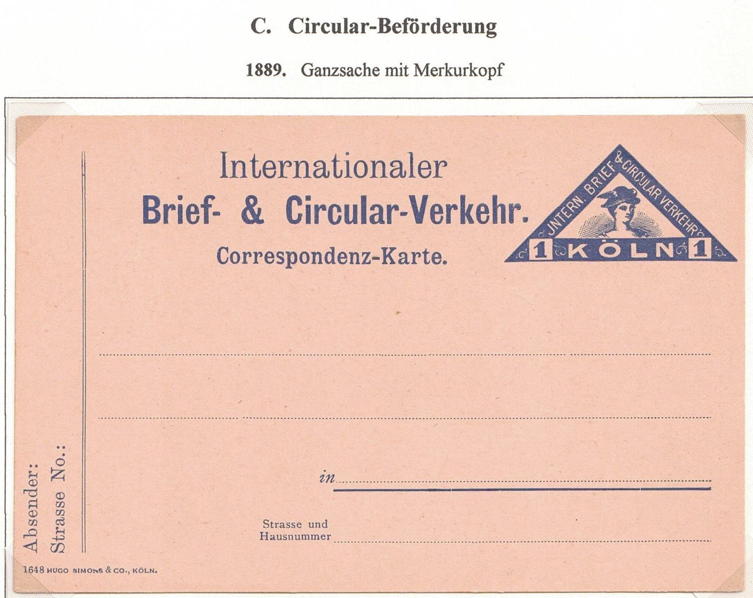 Die Circular-Beförderung existierte selbständig lediglich von Nov. 1888 bis Juli 1889. Hier wurde die Circular Beförderung in den "Internationaler Brief- & Circular-Verkehr" umbenannt bevor sie widerrum im November 1889 mit der oben genannten "Privat-Brief-Verkehr" vereinigt wurde.
