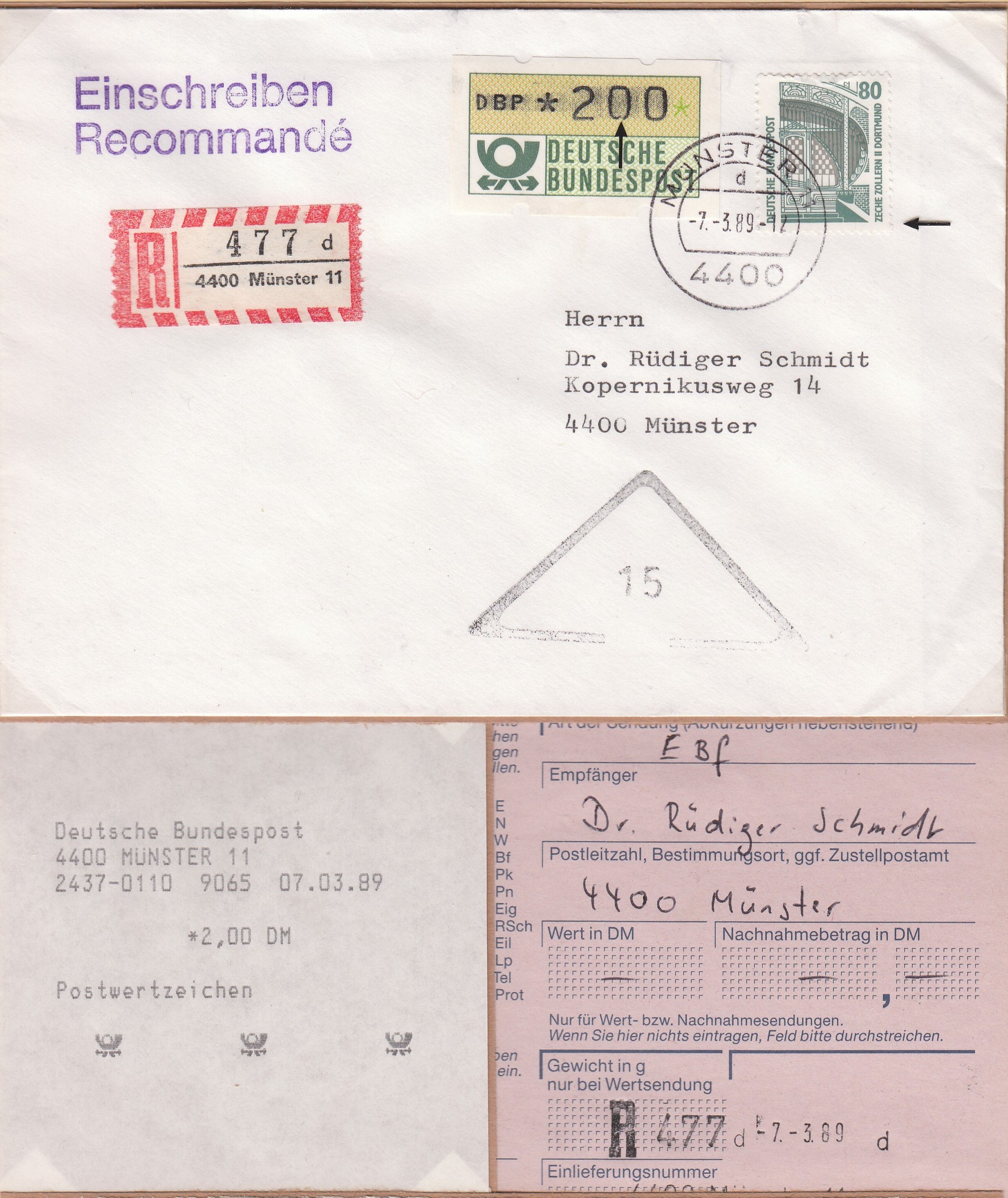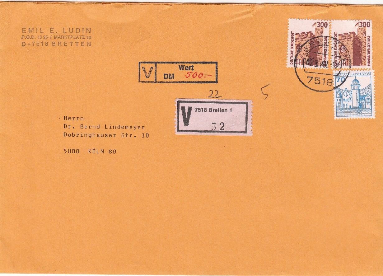 Hier für den Mai 1989 ein Wertbrief (500 Pf) der zweiten Gewichtsstufe (170 Pf).