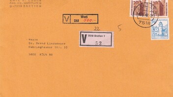 Die nicht ausreichende Frankatur dieses Standardbriefes (Postgebühr 80 Pf) fiel auf.