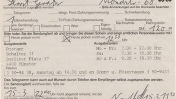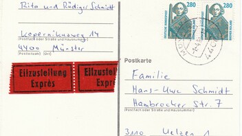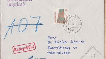 An diesem Tag war die Postgebühr für eine Drucksache von 50 Pf auf 60 Pf gestiegen.