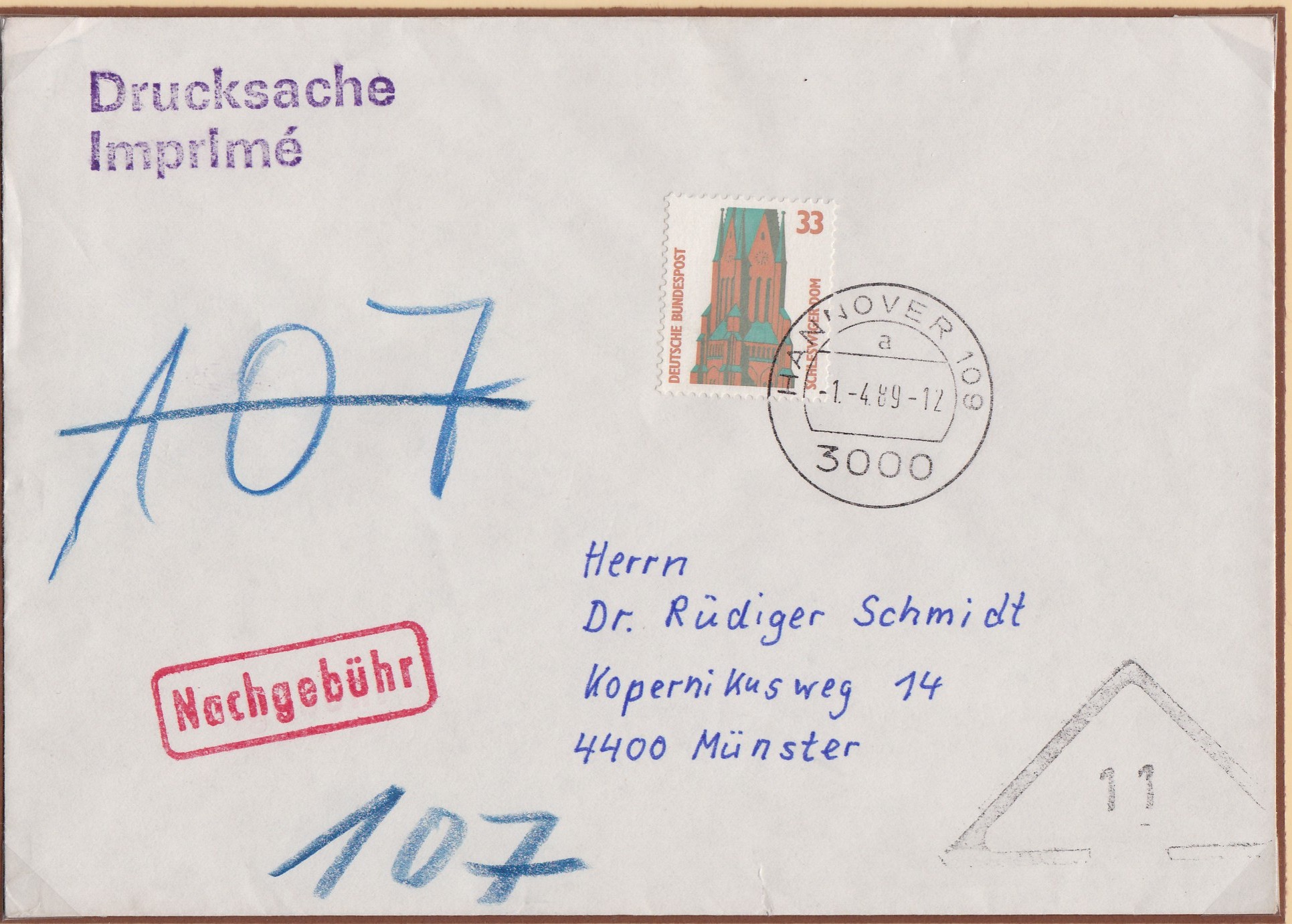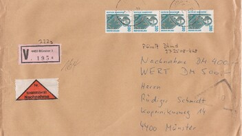 Auch die Postgebühr für Briefdrucksachen stieg am 1.4.89.