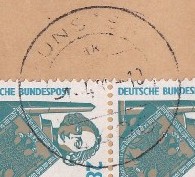 Hier wird diese Portostufe mit einem 2er-Streifen des 100 Pf Wertes SWK dargestellt.