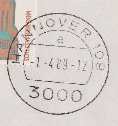 Die Entwertung erfolgte mit Tagesstempel Hannover am 1.4.89.