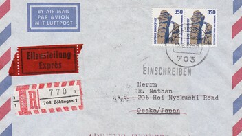 Rückseitig Ankunftsstempel Osaka 12.II.89.