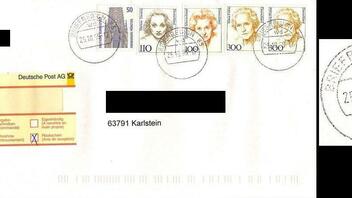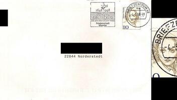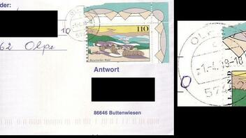 Der nächste Beleg ist ein Standardbrief mit einem Maschinenstempel vom