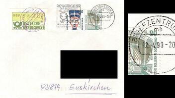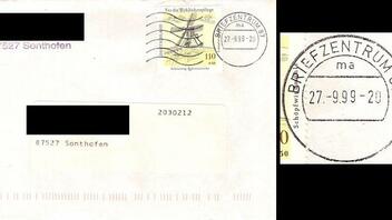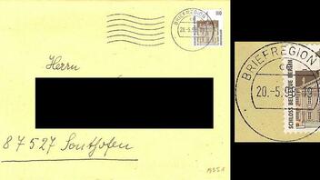 Ein Standardbrief mit Maschinenstempel vom Briefzentrum 90