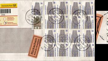 Entwertet mit einem Maschinenstempel vom Briefzentrum 53
