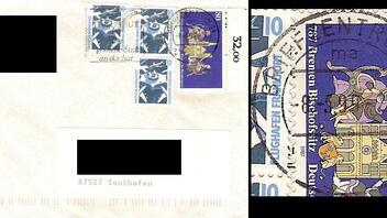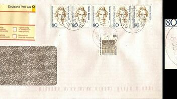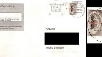 und einem Stempel nachträglich entwertet Deutsche Post AG